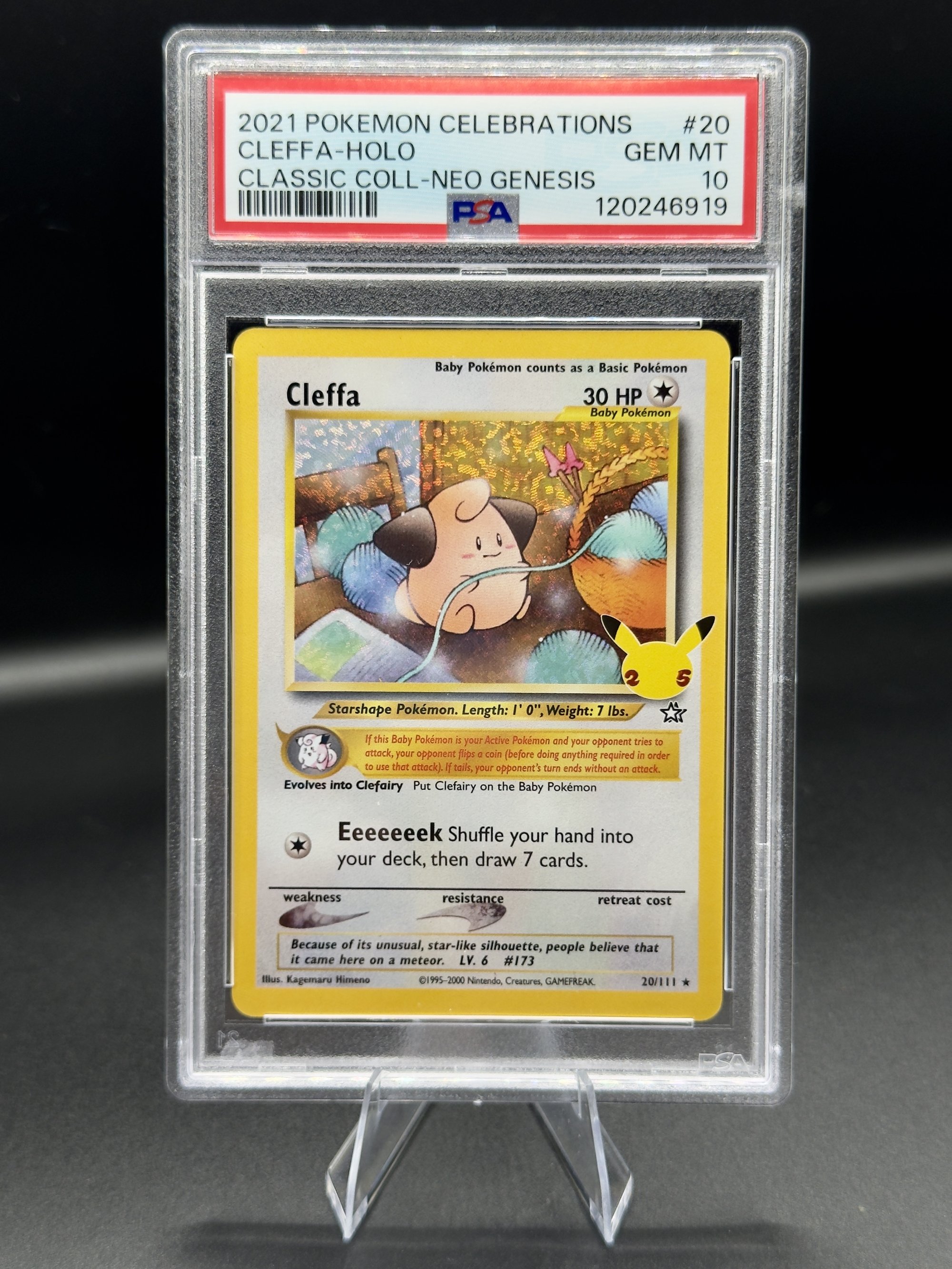 Add a charming and nostalgic collectible to your Pokémon TCG collection with this PSA 10 Cleffa 20/111. Graded a perfect GEM MINT 10 by PSA, this card features pristine surfaces, sharp edges, and bright artwork that captures Cleffa’s classic, adorable design.